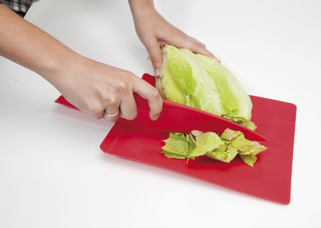 Set de cocina con tabla y cuchillo en variada gama de vivos colores. Tabla en resistente material flexible con asa para fácil manejo. Cuchillo con hoja translúcida y mango ergonómico troquelado. 2 Piezas. Tabla Flexible