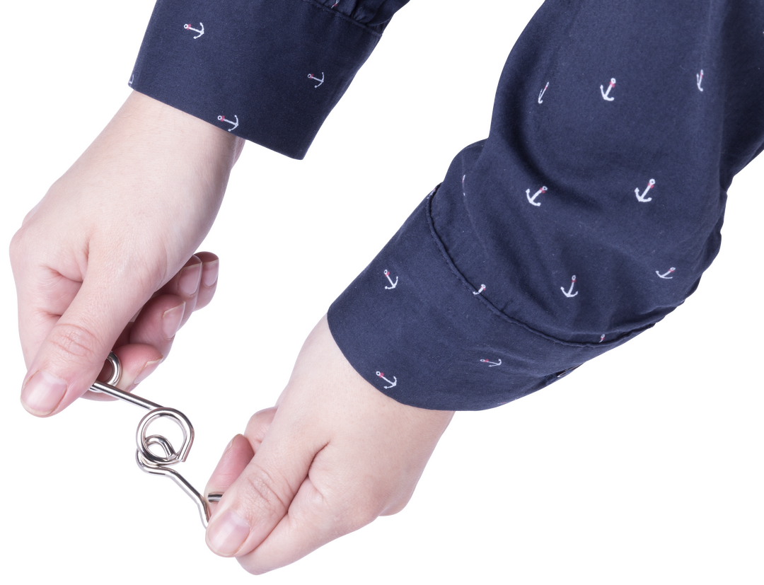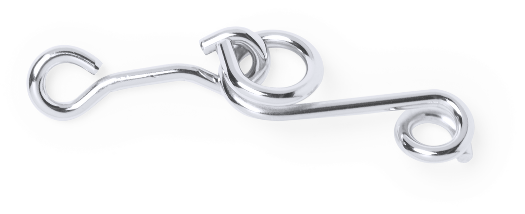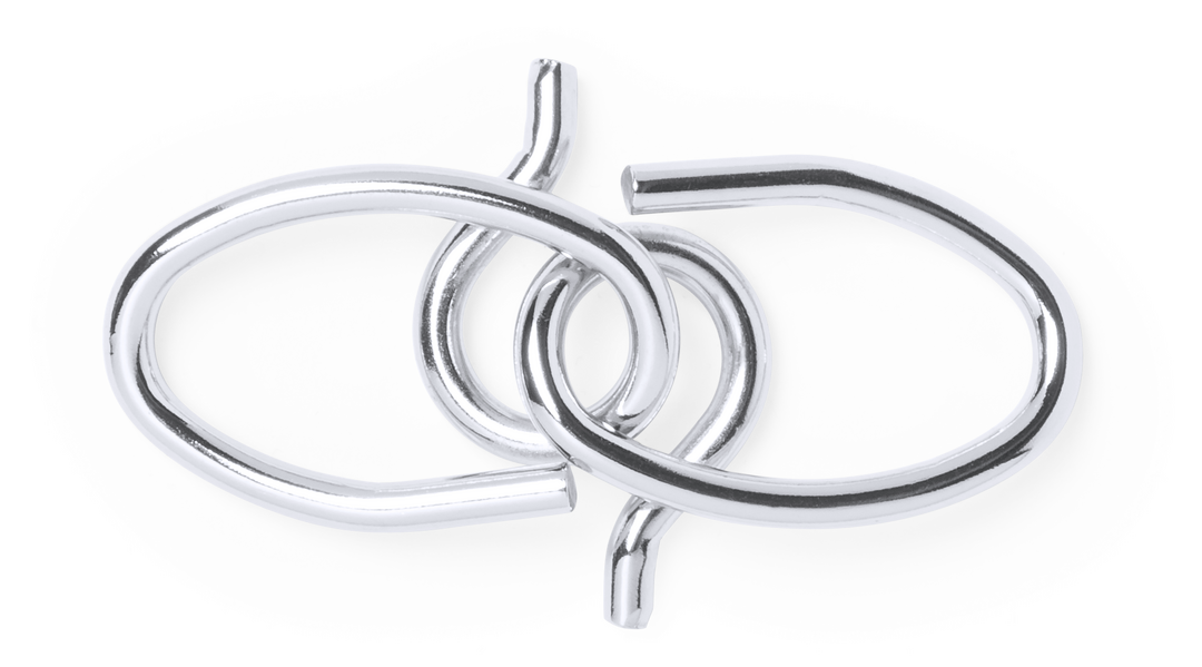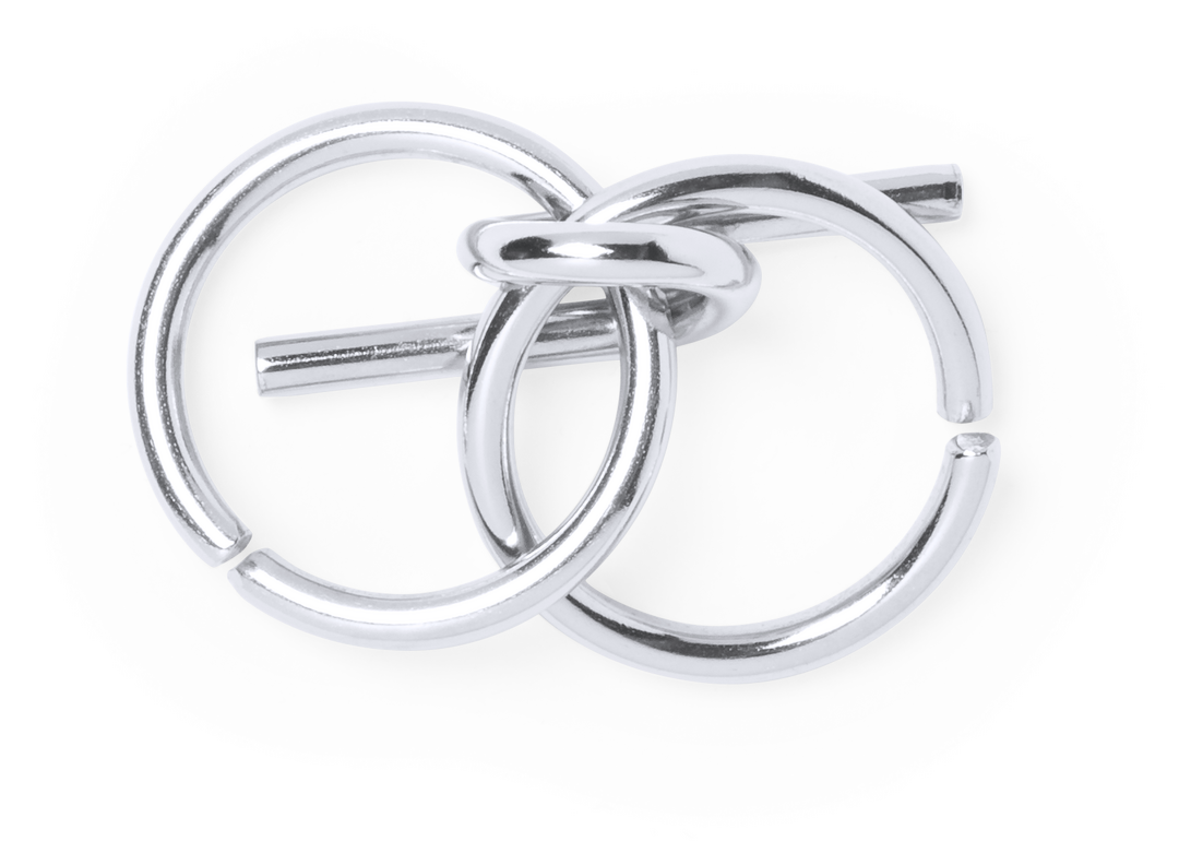 Set de 4 juegos de habilidad de acero inox para los jugadores más ingeniosos. Presentado en bolsita de color crudo con cordón de cierre auto ajustable. 4 Juegos