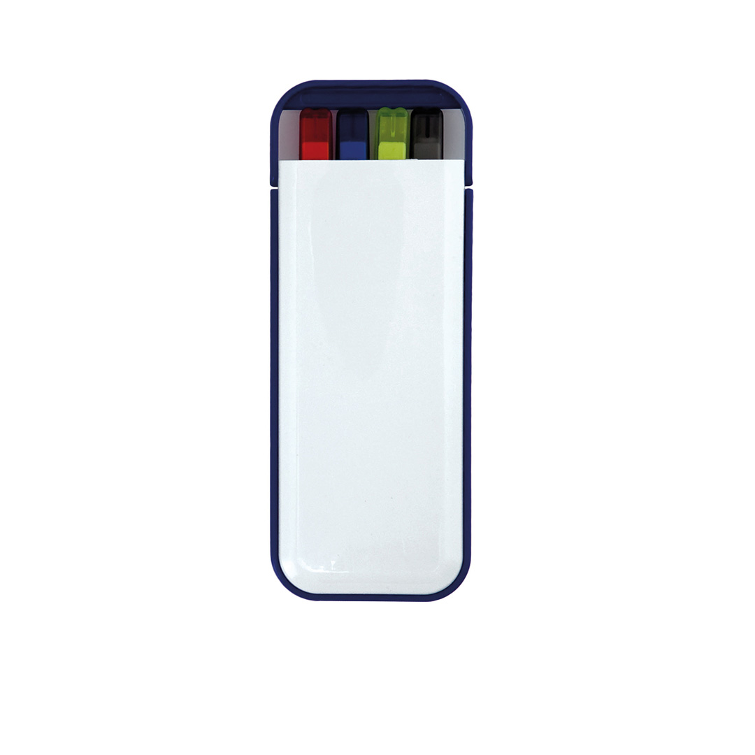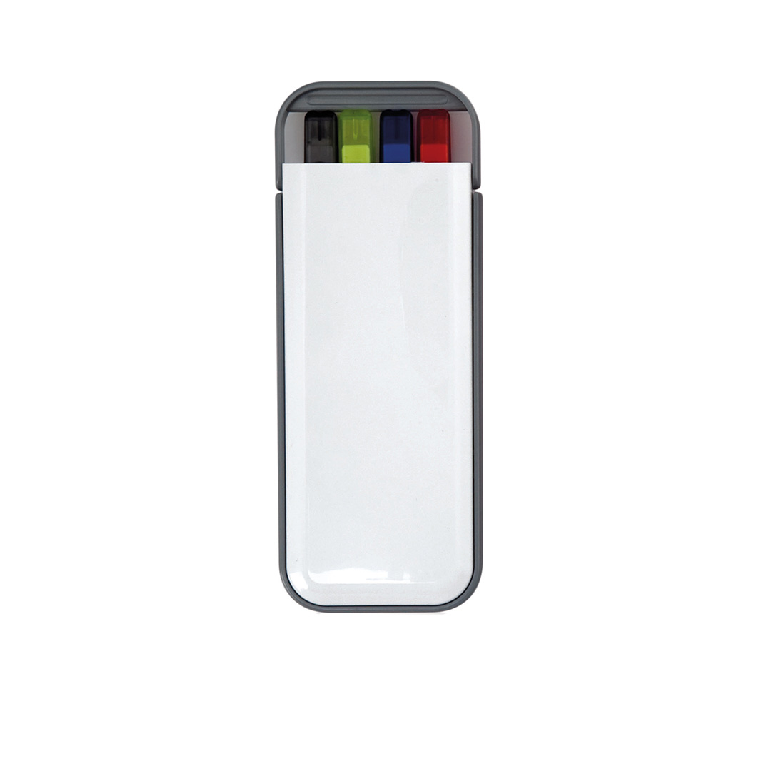 Set de 2 x bolígrafos, 1 x portaminas y 1 x marcador fluorescente en original combinación bicolor. Funda con cuerpo en suave acabado de color blanco con borde en gris y especialmente diseñada para marcaje en tampografía o impresión digital. Incluye bolígr 4 Piezas