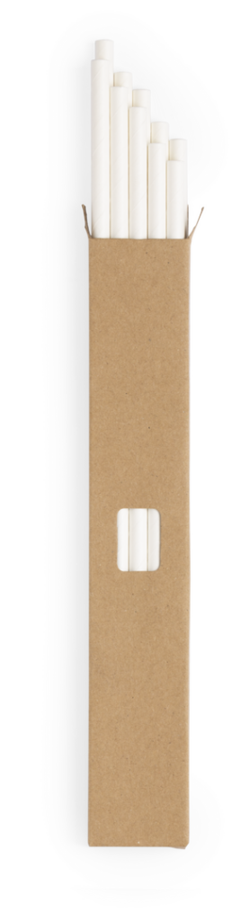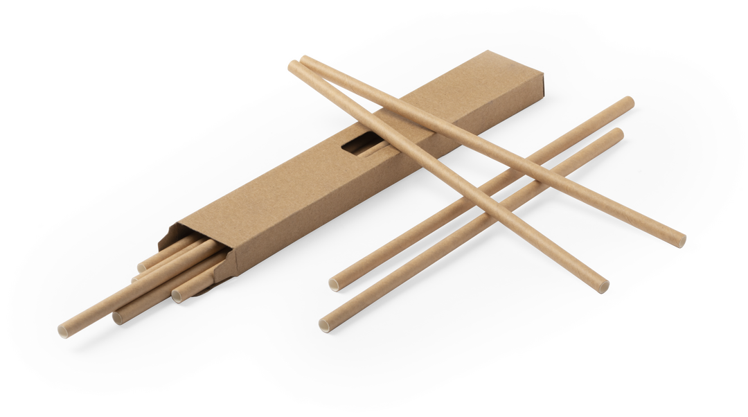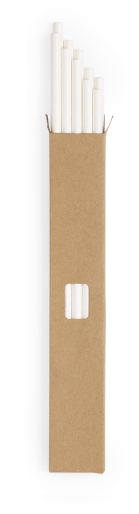 Set de pajitas de papel con tratamiento especial anti humedad. Compuesto por 10 pajitas, presentadas en estuche de cartón reciclado. Disponible en acabado natural y marrón. 10 Piezas