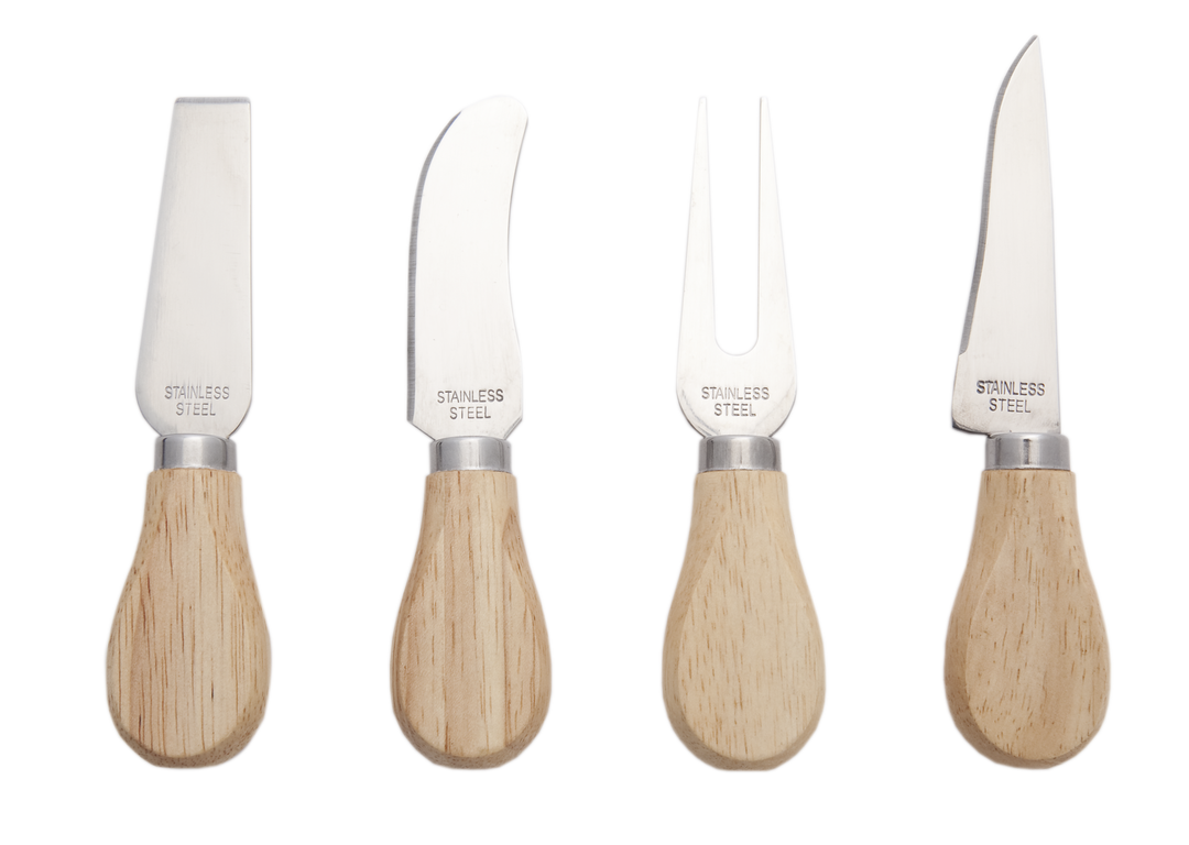 Set para quesos con utensilios de acero inox con mango en madera natural. Presentado en estuche individual con suave espuma interior troquelada. 4 Piezas
