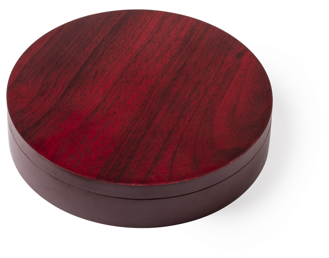 Set de vinos de elegante diseño circular con acabado en madera natural. Accesorios de acero inox y madera. Incluye sacacorchos con cortacápsulas y abridor, tapón, dosificador, recogegotas y termómetro. Presentado en estuche individual con interior en suav 5 Accesorios