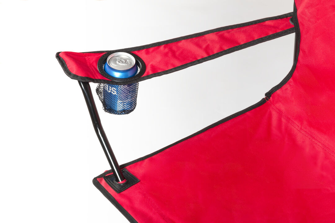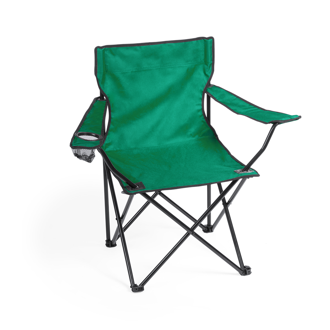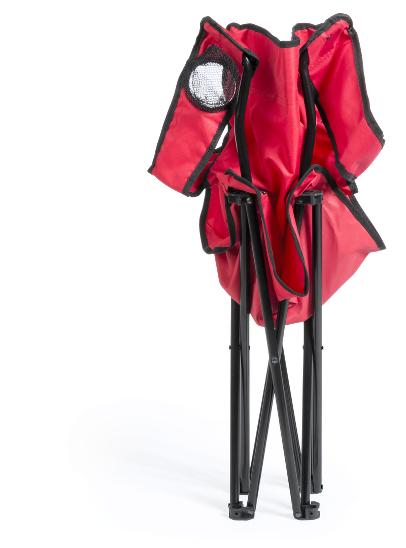Silla plegable con resistente cuerpo de metal tubular. En resistente poliéster 600D en variada gama de vivos colores. Con costuras reforzadas, apoyabrazos y bolsillo de redecilla integrado para bebida. Con refuerzos de goma antideslizantes en las patas y Plegable