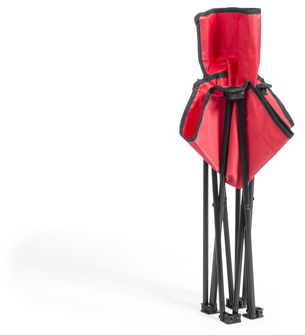 Silla plegable con resistente cuerpo de aluminio tubular. En resistente poliéster 600D en variada gama de vivos colores. Con costuras reforzadas, refuerzos de goma antideslizantes en las patas y presentada en funda individual con cordón auto cierre, acces Plegable