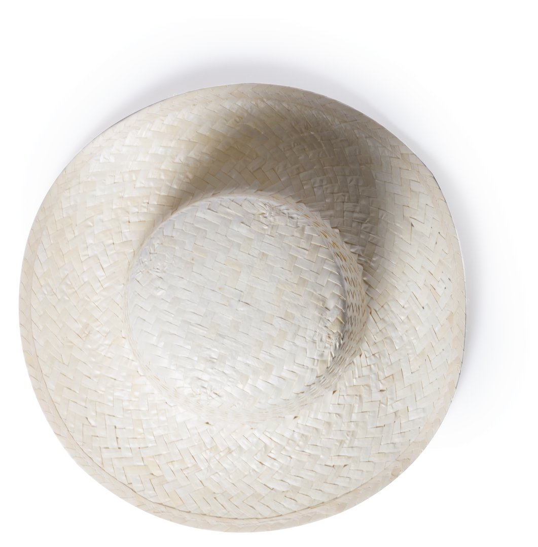 Sombrero de paja en color natural con confortable cinta interior y superficie exterior especialmente diseñada para marcaje en tampografía.