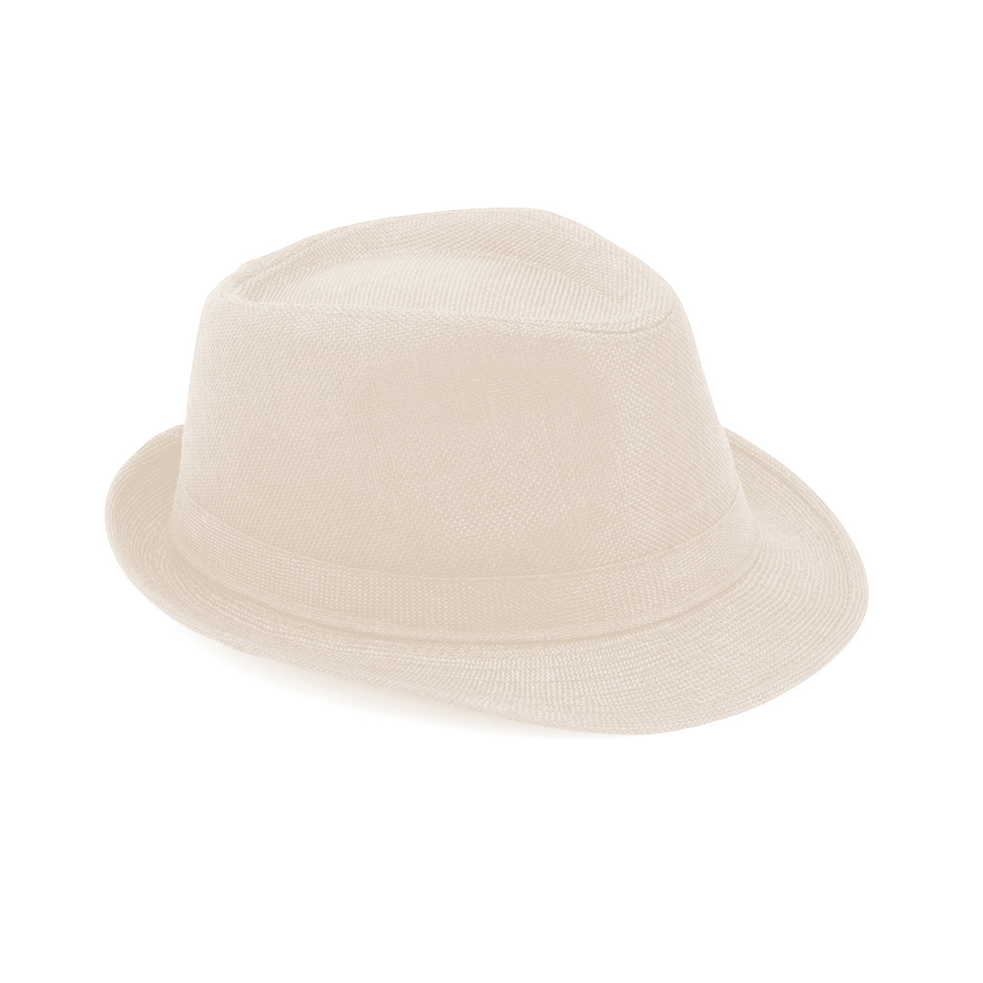 Sombrero de alta calidad en material sintético de sobrios colores con confortable cinta interior a juego.