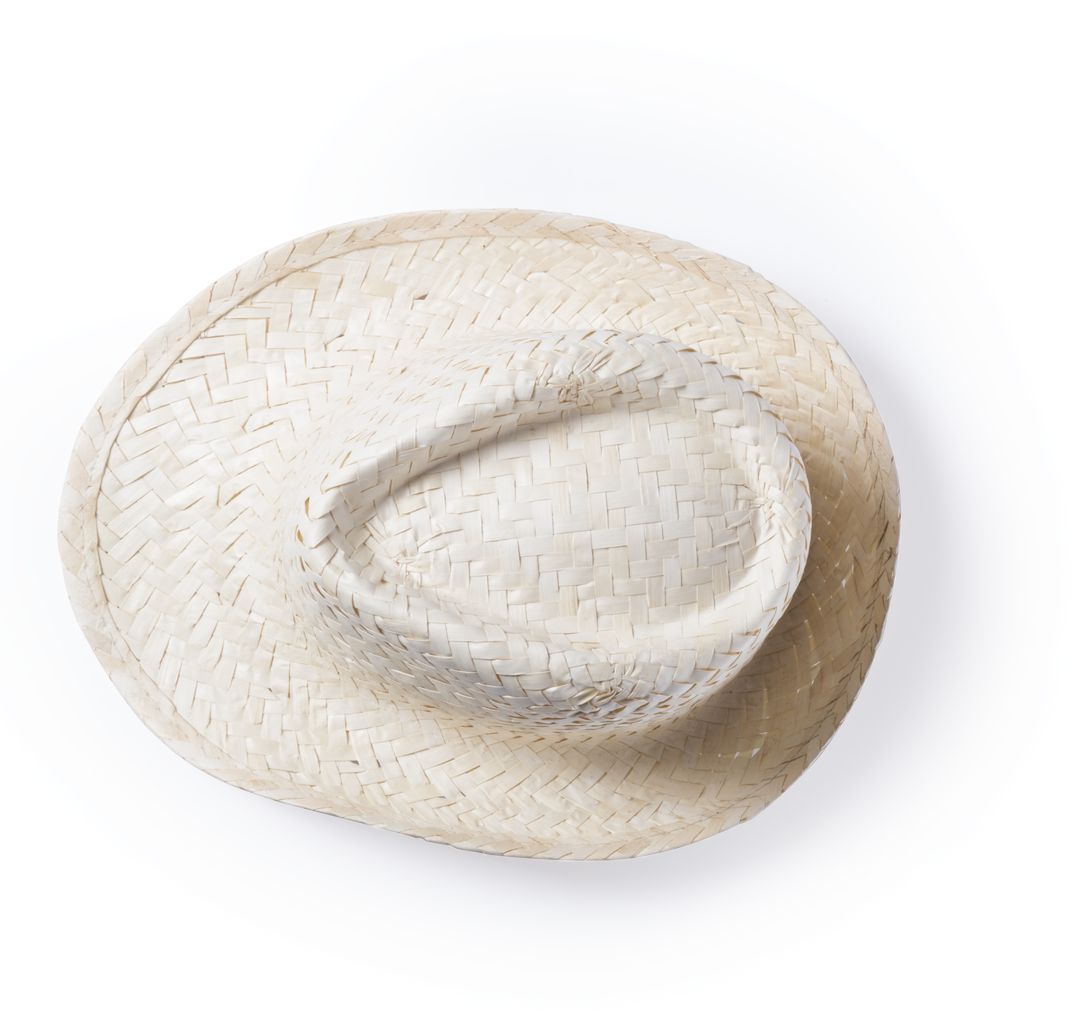 Sombrero de paja en color natural con confortable cinta interior y superficie exterior especialmente diseñada para marcaje en tampografía.