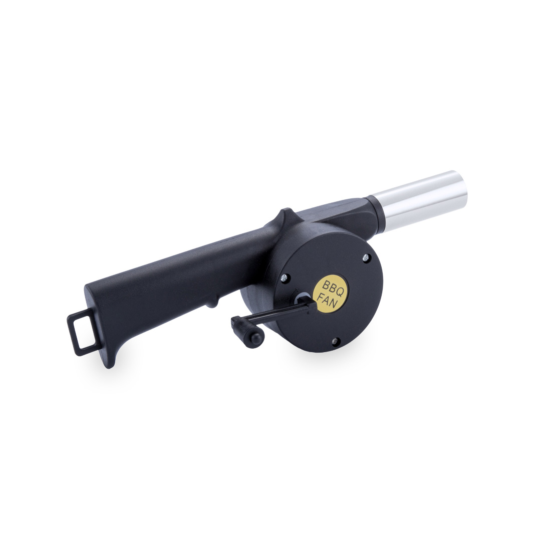 Soplador para avivar el fuego con ingenioso mecanismo de soplado mediante manivela.