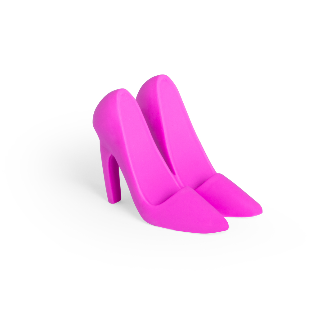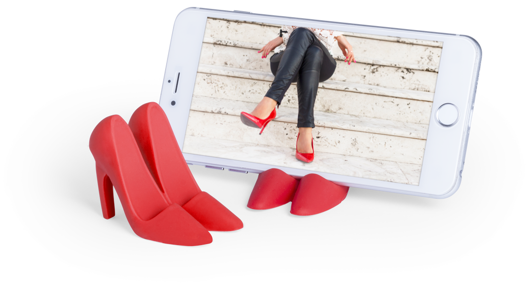 Original soporte para smartphone en forma par de zapatos de tacón en suave y resistente silicona de llamativos colores.