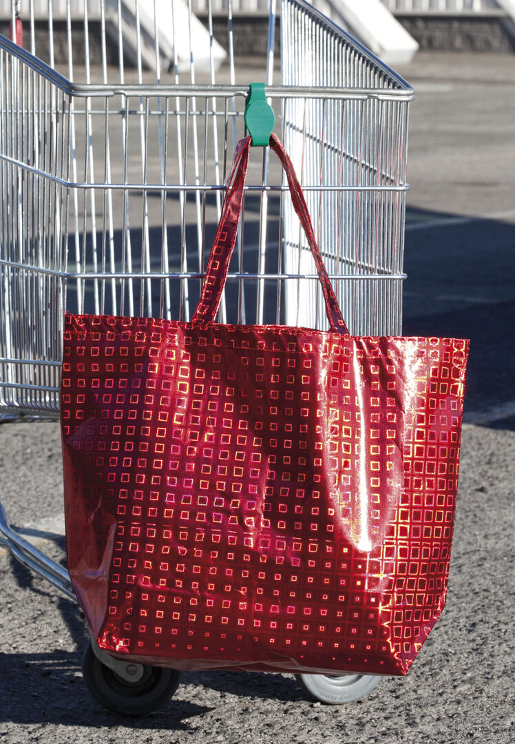 Original y resistente soporte para bolsas en variados y vivos colores. Con pestaña de alta resistencia para acople en cualquier carrito de la compra.