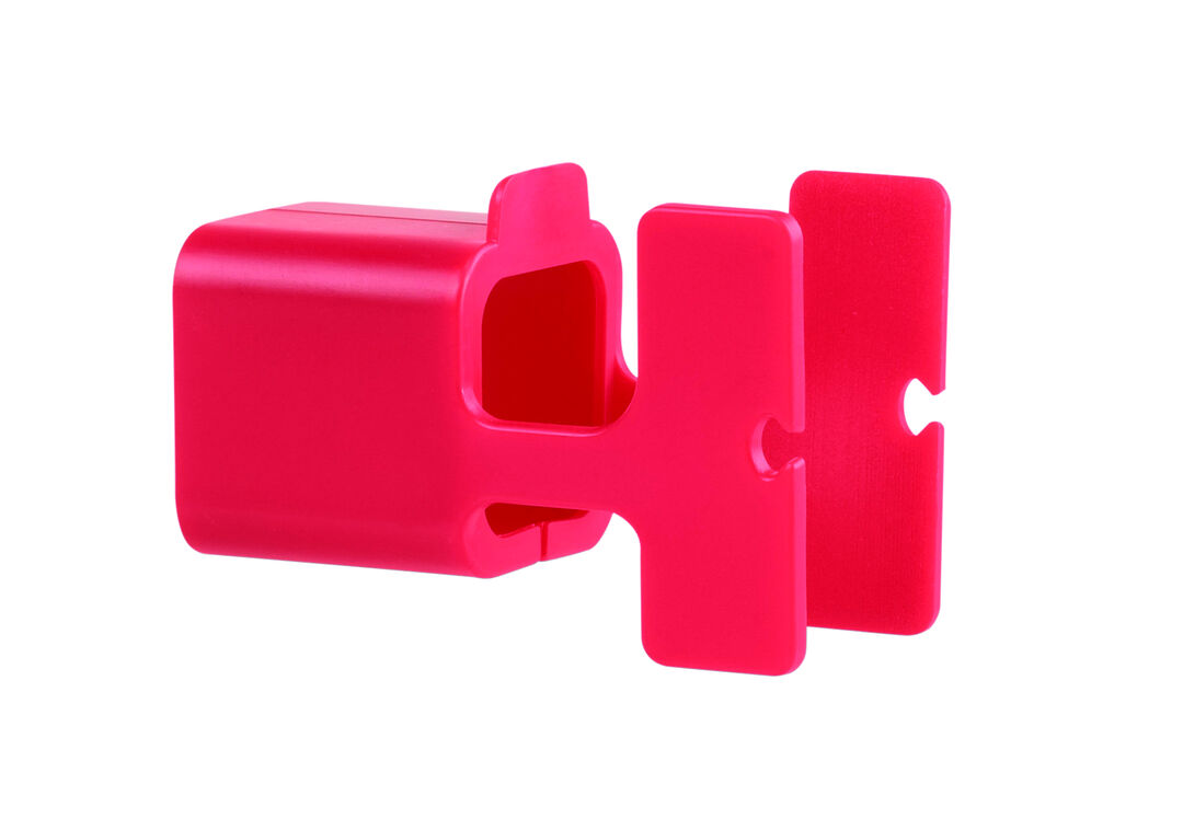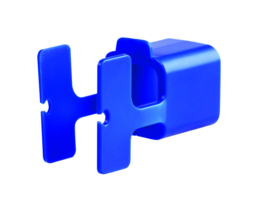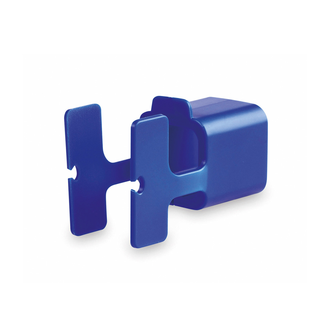 Original soporte para acople en toma de corriente de pared. Con ranura para sujeción del cable y cuerpo en acabado brillante. Especialmente diseñado para marcaje en tampografía.