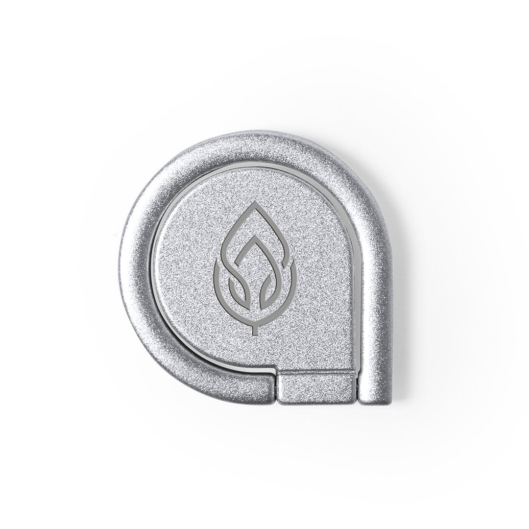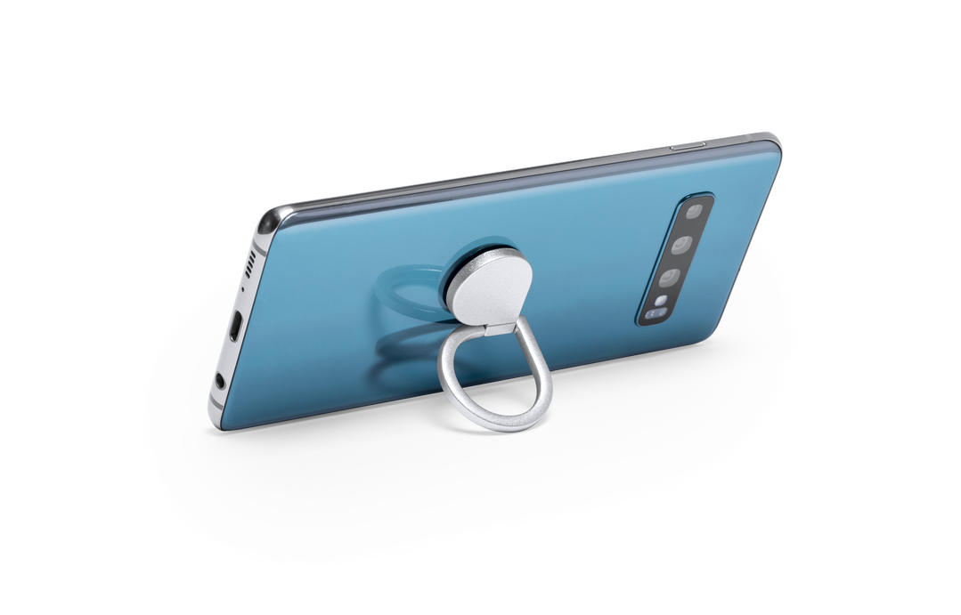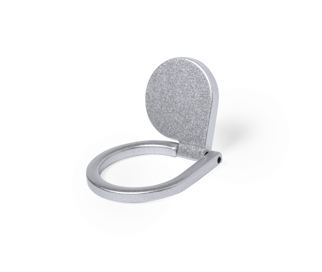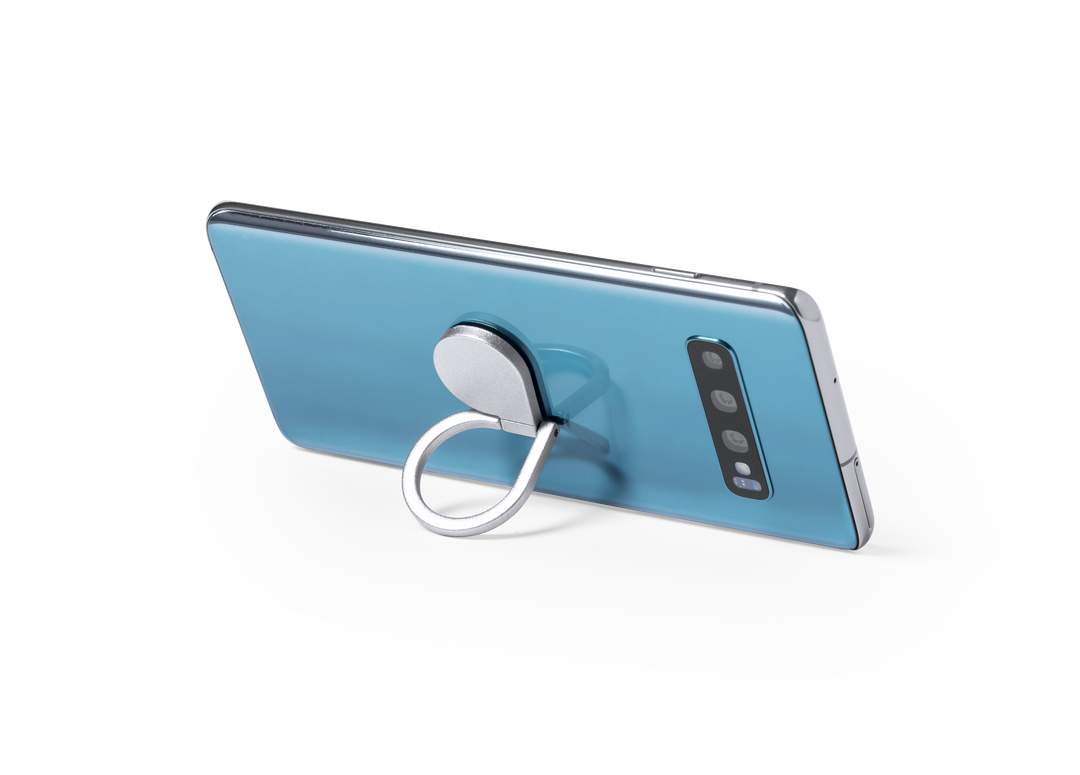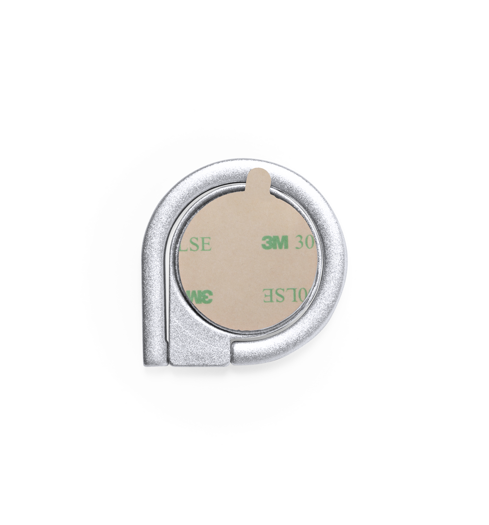 Soporte metálico para smartphone en acabado mate. De elegante diseño y con adhesivo 3M, de fijación extra fuerte y libre de residuos al despegarlo del dispositivo. Con anilla soporte posterior para dedo y presentado en bolsita individual de diseño. Adhesivo