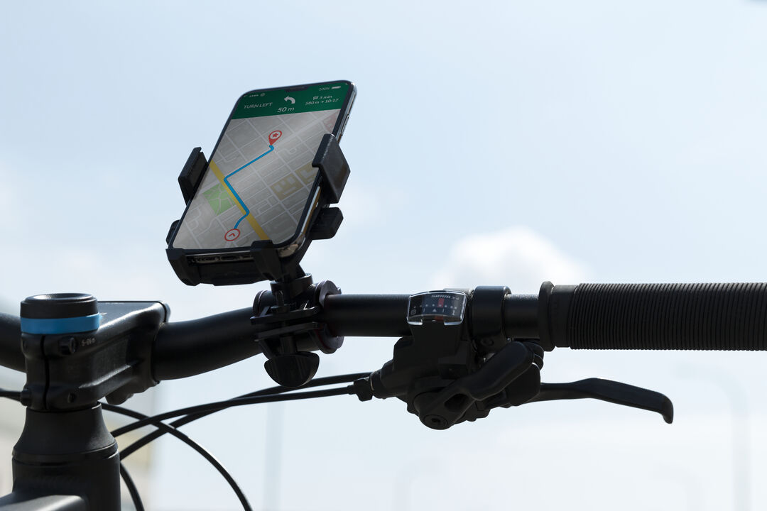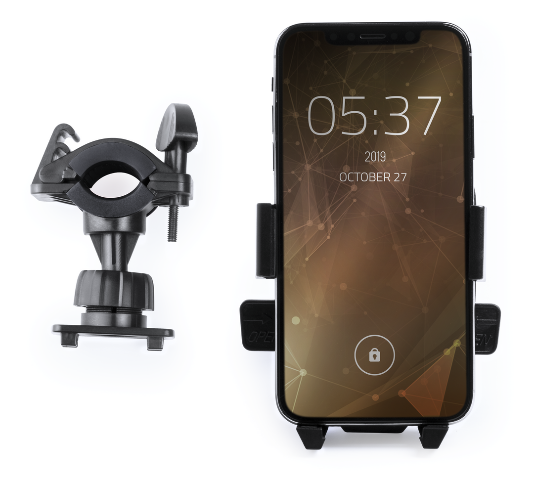 Práctico y resistente soporte de manillar para smartphone. Con 3 posiciones, rotación 360º y ángulo de inclinación de hasta 45º. Sólida pinza de agarre y presentado en atractiva caja de diseño.