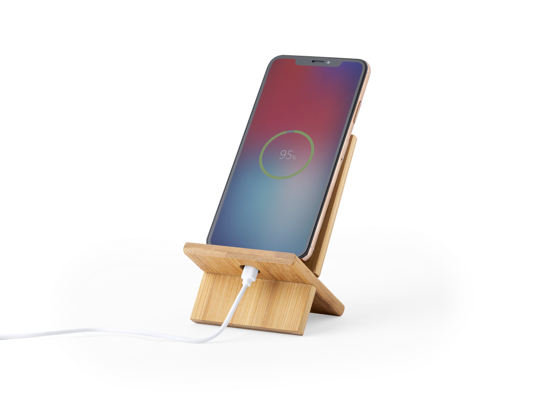 Soporte de línea nature fabricado en bambú procedente de cortes naturales. Muy fácil de montar, con ranura para cargar el dispositivo mientras se se encuentra situado en la base.