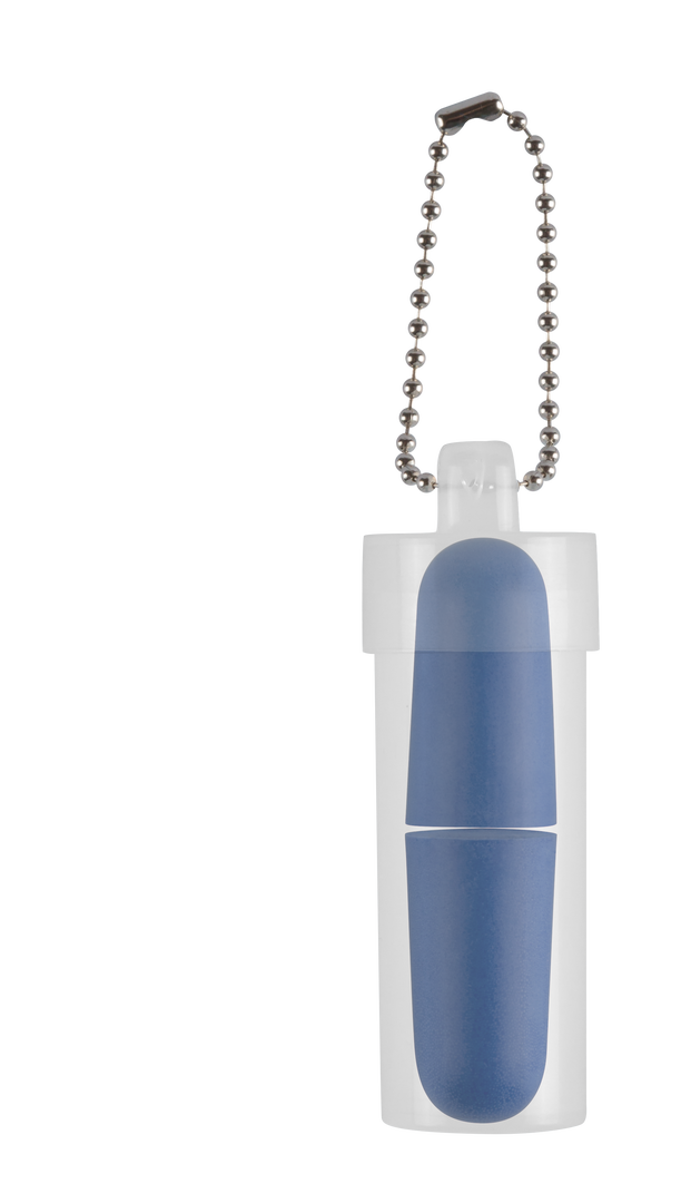 Confortables tapones para oídos en confortable material EVA de vivos colores. Presentados en estuche individual transparente con cadenita de transporte