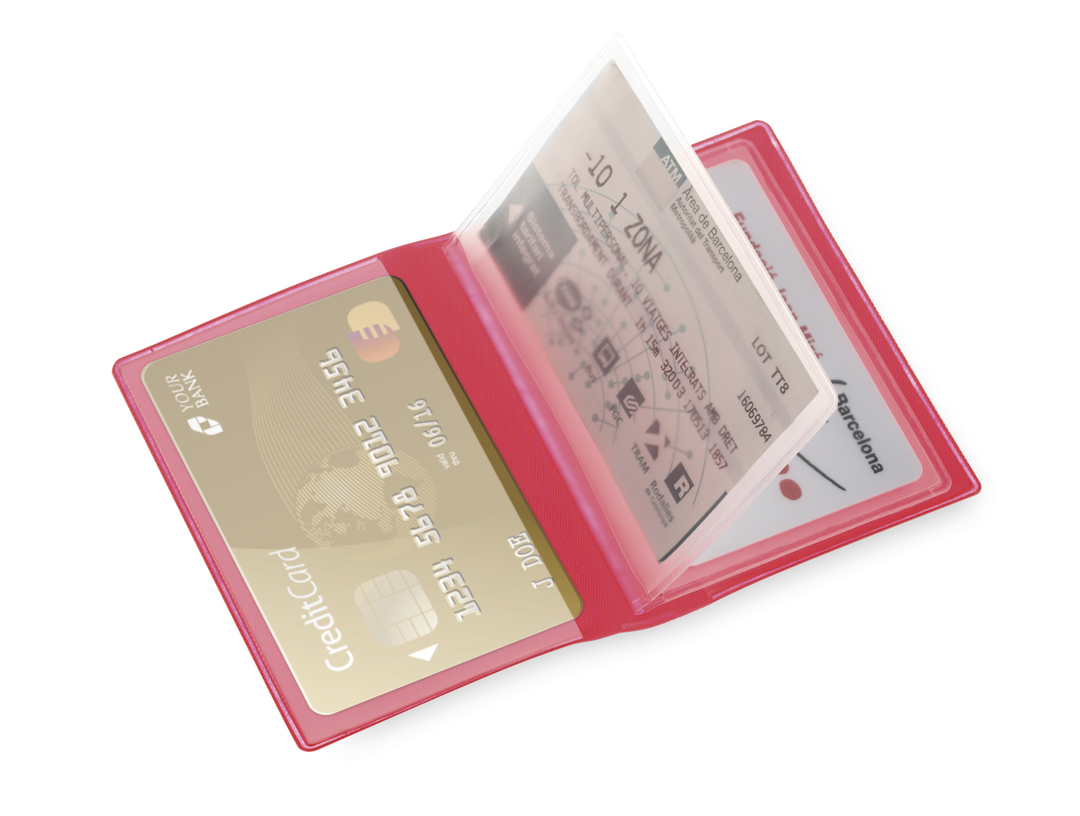 Tarjetero con acabado en PVCendivertidos colores y 6 compartimentos interiores en resistente PVC transparente. 6 Compartimentos