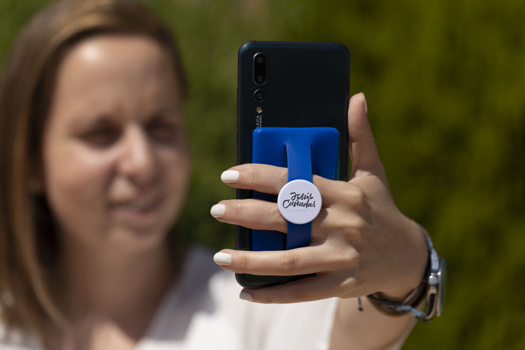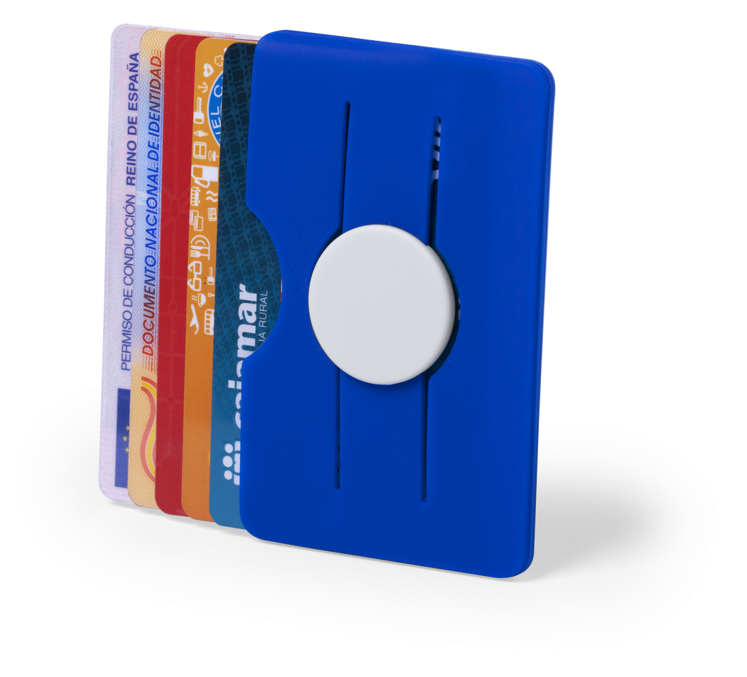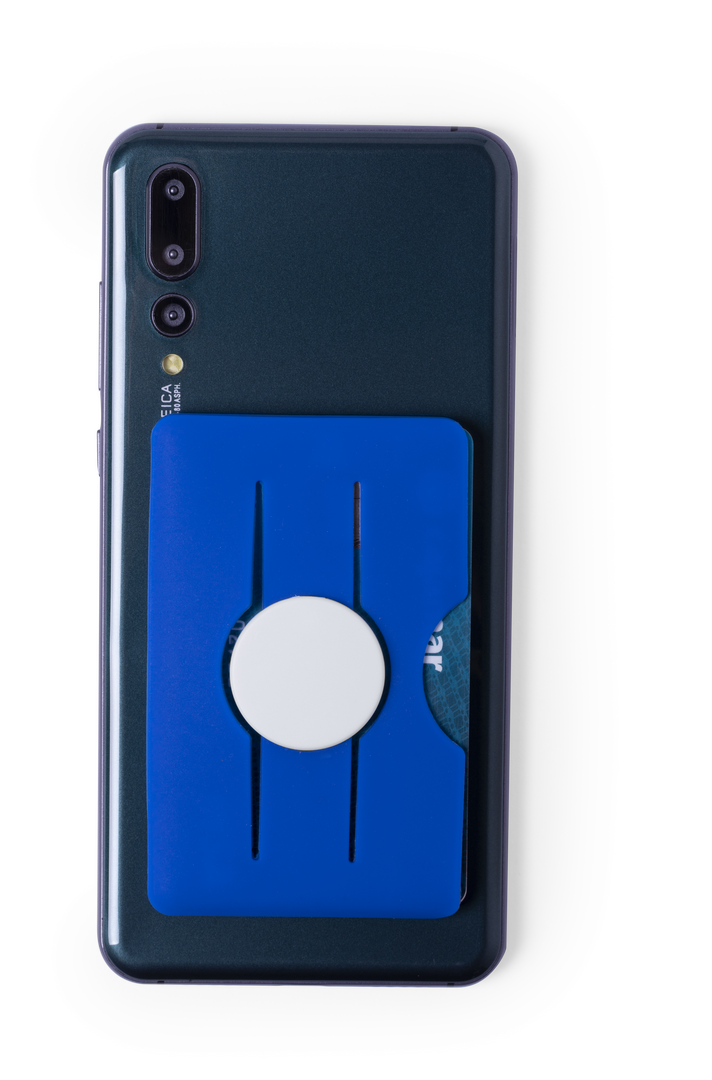 Tarjetero con sporte para smartphone. En materiales ABS y silicona, con adhesivo 3M, de fijación extra fuerte y libre de residuos al despegarlo del dispositivo. Tarjetero con capacidad para 4-5 tarjetas y disponible en llamativos colores, con soporte para Adhesivo. 1 Compartimento