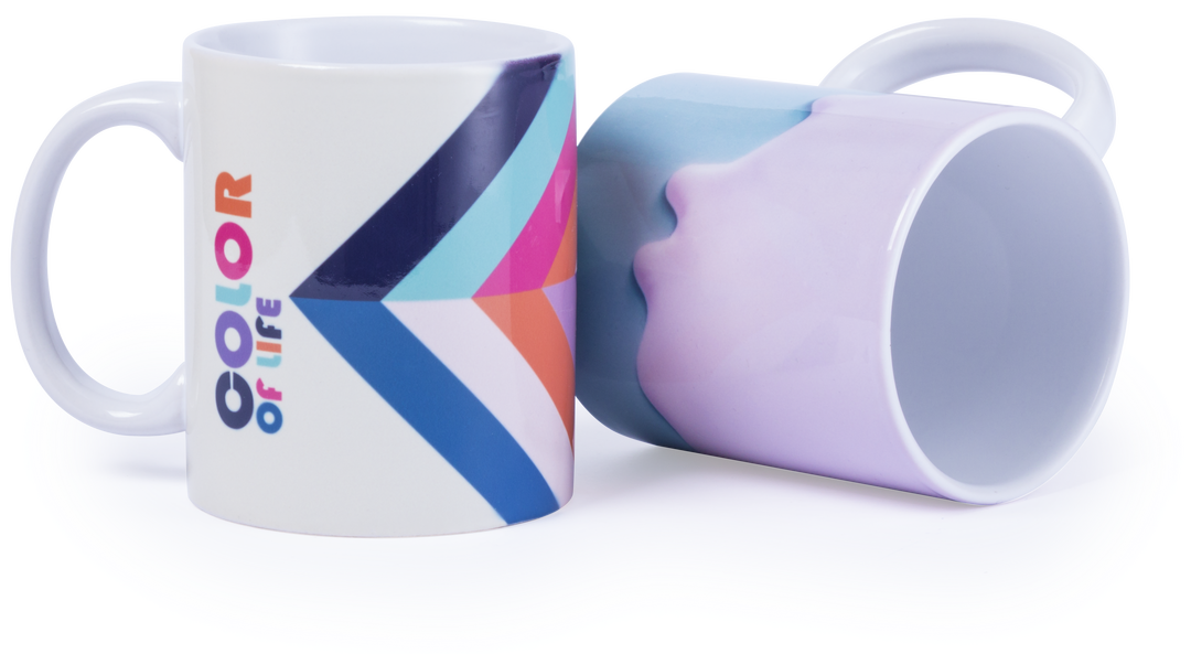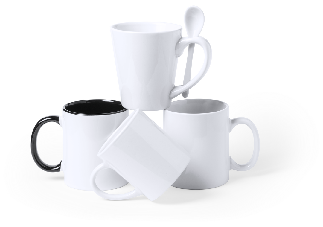 Taza de cerámica de 350ml de capacidad en color blanco y especialmente diseñada para marcaje en sublimación. Presentada en caja individual. 350 ml. Presentación Individual