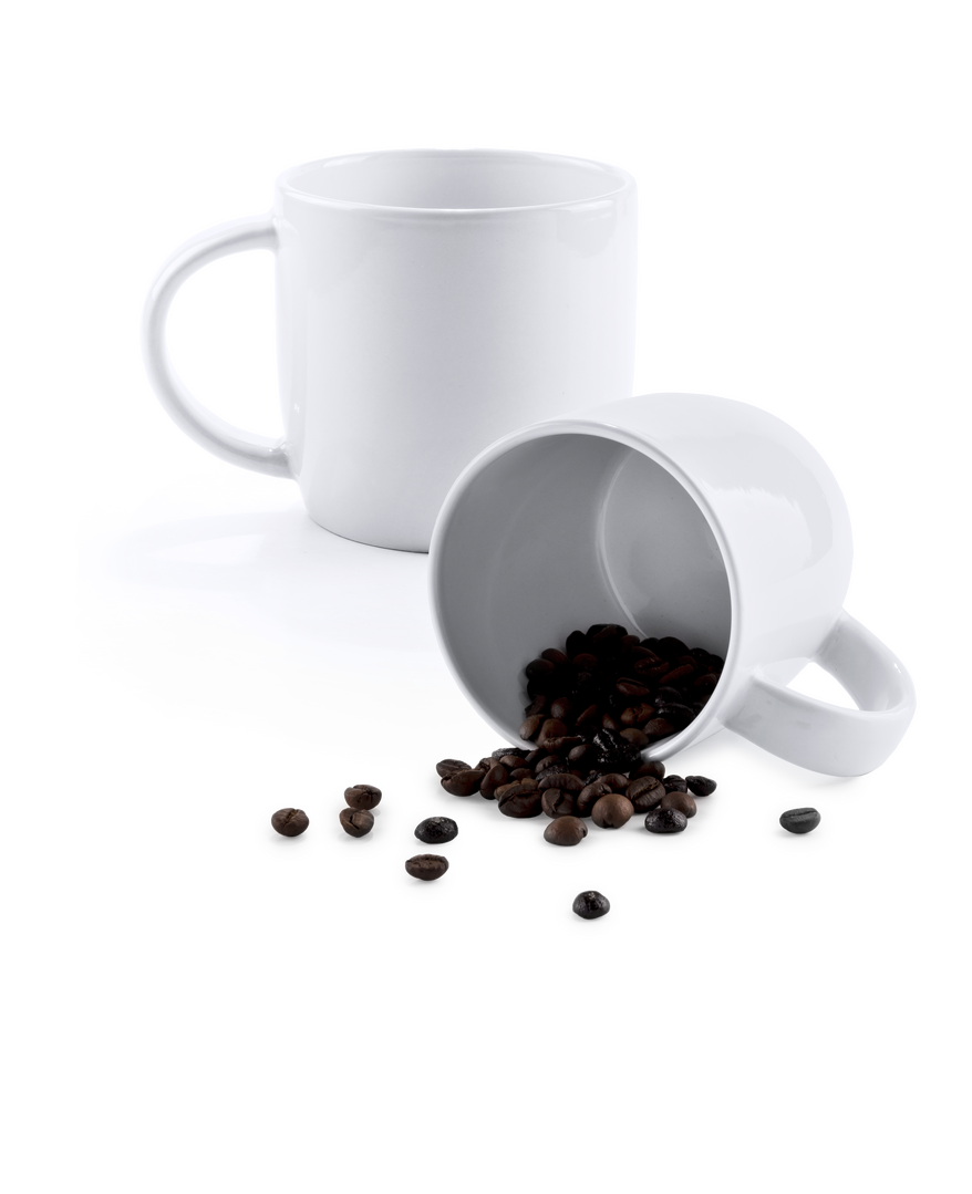 Taza de cerámica de 380ml de capacidad en color blanco para los amantes del café largo. Presentada en caja individual. 380 ml. Presentación Individual