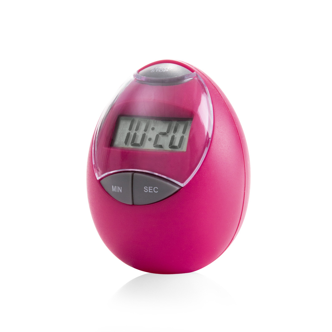 Temporizador digital de original diseño ovalado con tapa en transparente y cuerpo en alegres colores. De hasta 100 minutos de duración y con función cronómeto. Alimentación a pila: 1x AAA no incluida y presentado en caja individual. Función Cronómetro. 1 Pila AAA No Incluida