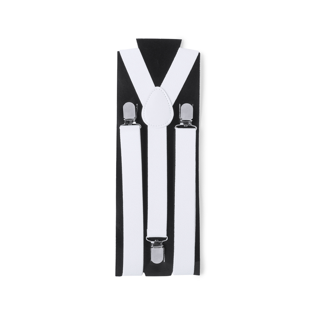 Tirántes elásticos de poliéster en sobrios colores con accesorios metálicos. Con refuerzo de polipiel en espalda a juego y presentados en original cartulina individual de color negro. Talla Única. Adulto
