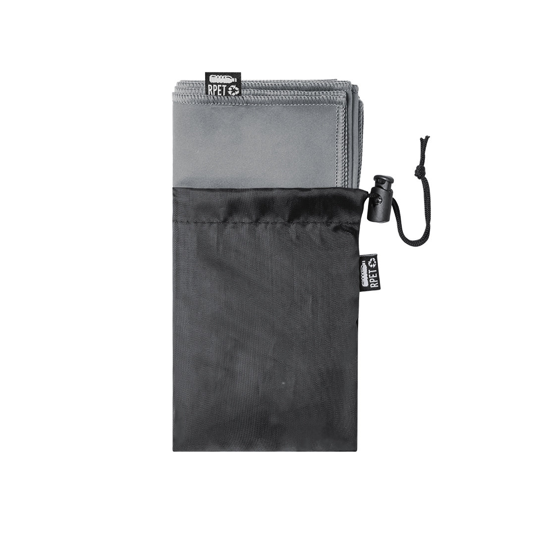 Toalla absorbente de línea nature y en resistente poliéster RPET, elaborado a partir de plástico reciclado para así fomentar la reutilización de residuos plásticos y contribuir a la sostenibilidad del planeta. De 30x80cm, disponible en variada gama de col Plegado 11,5 x 15,5 x 4 cm