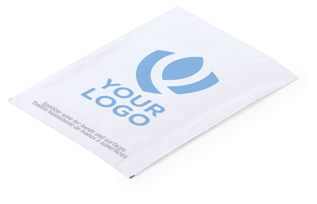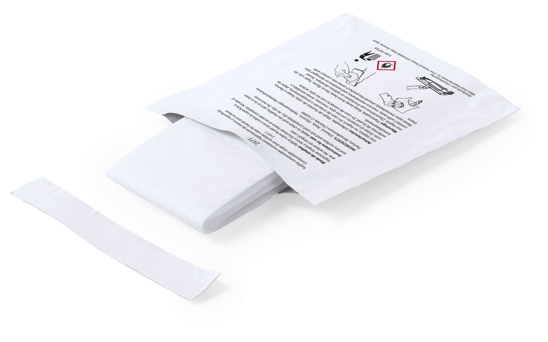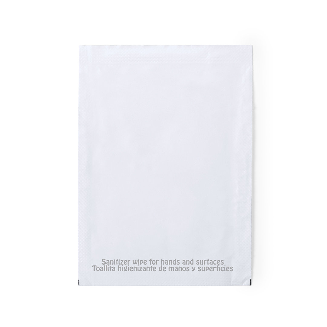 Toallita húmeda higienizante hidroalcohólica para limpieza de manos y superficies de uso frecuente (smartphones, barras del carrito de la compra, teclados…). Fabricada en material 100% compostable y presentada en sobre monodosis de 2 ml, con amplia superf