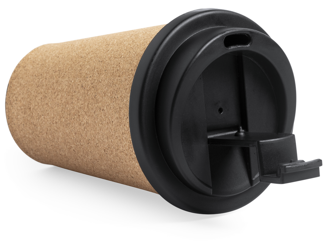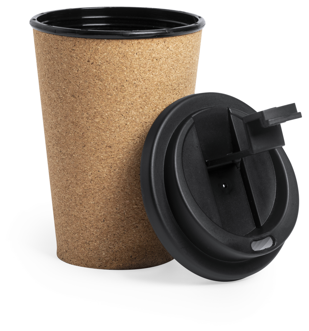 Vaso de línea nature, fabricado en corcho natural. 350 ml de capacidad, con tapa/dosificador de seguridad en PP, libre de BPA. 350 ml