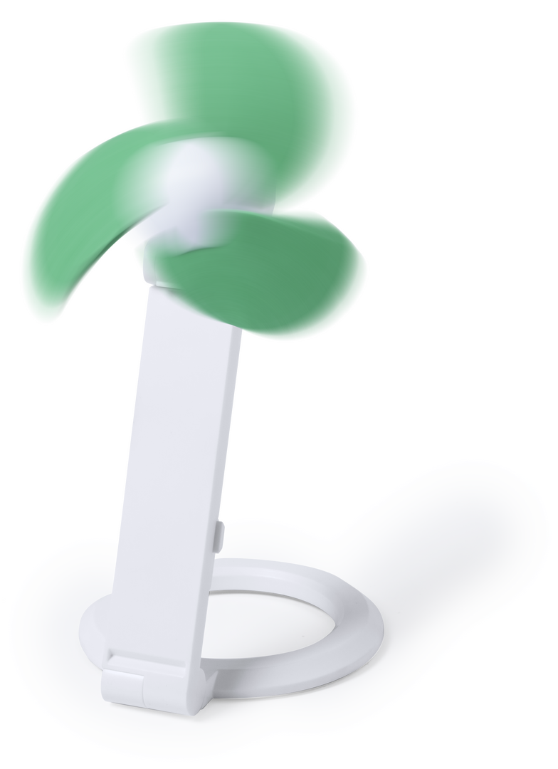 Práctico ventilador plegable de atrevido diseño bicolor y aspas de espuma EVA, con pie antideslizante. Alimentación por USB y presentado en caja individual. Conexión USB. Cable Incluido