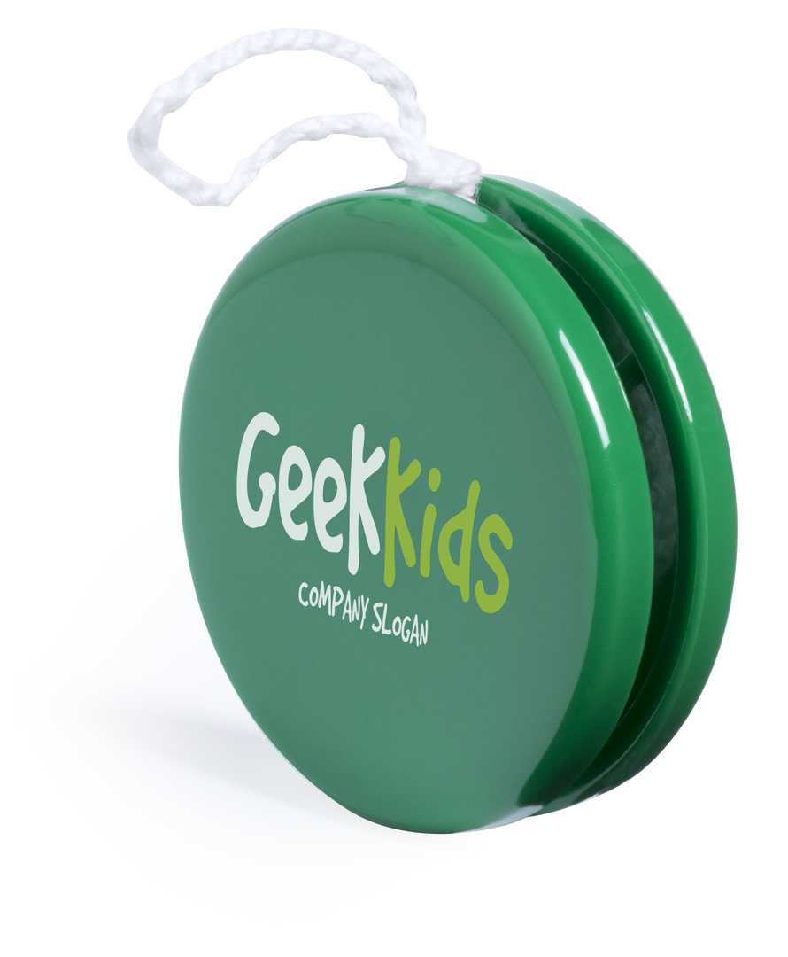 Yoyó en resistente material PS, disponible en variada gama de colores. Con hilo rizado de algodón en color blanco de 100 cm.